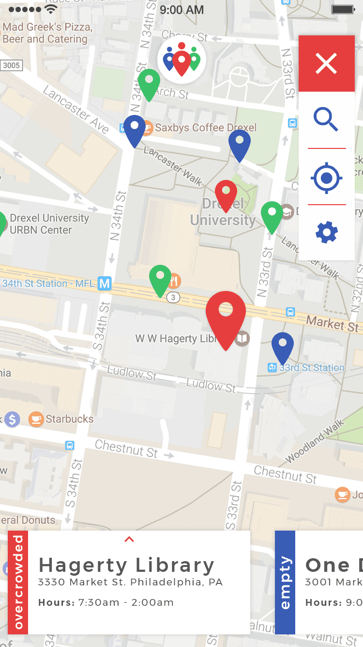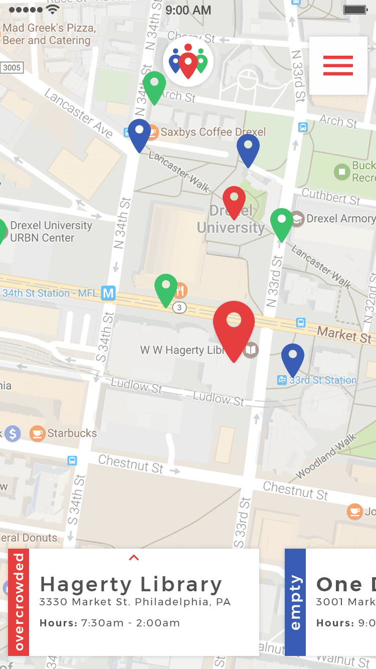 Crowds was a Philadelphia startup that makes navigating study spots, bars, and restaurants easier. The app provides users with real-time crowding information, helping them choose quiet spaces to study or busy bars to socialize. As Co-founder, I brought Crowds to life through mobile app design and web promotion.
